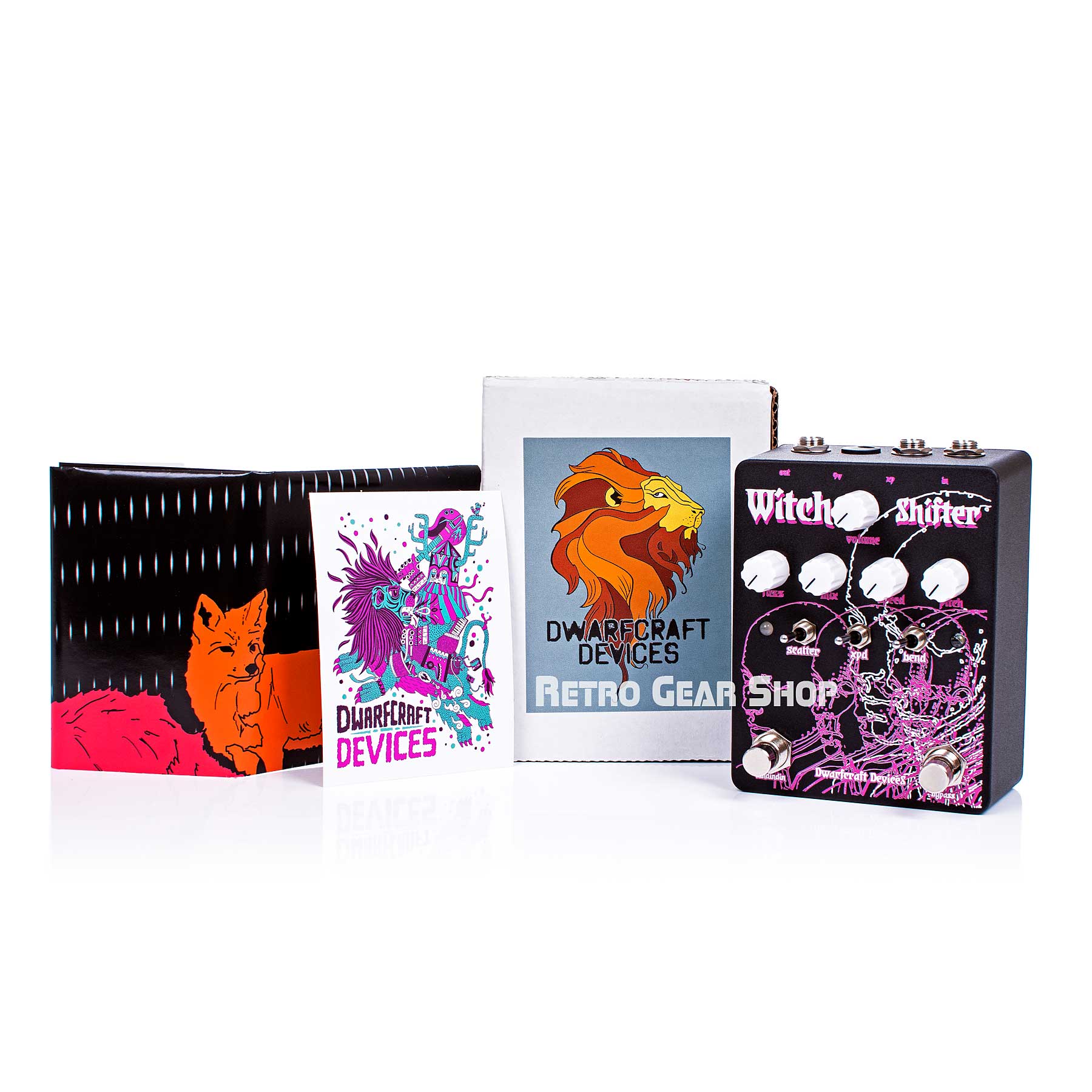 The Witch Shifter is also our smoothest and cleanest pitch pedal, presenting you high fidelity audio. Unless you want it dirty… in that case, turn up the on-board fuzz. You can turn the knob from pristine-clean all the way up to super destroyed digital damnation, with the old fashioned wizard’s hiss somewhere around ten o’clock on the dial.