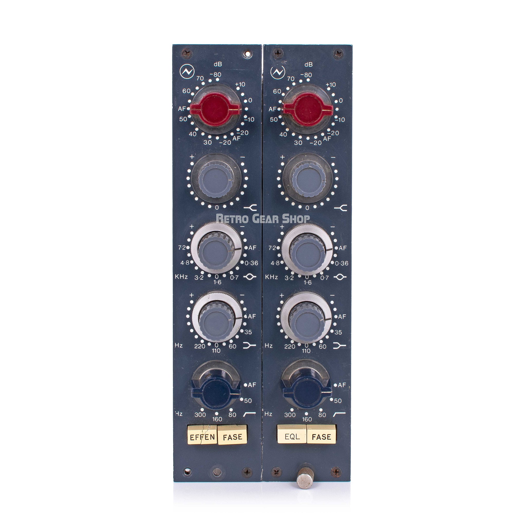 For sale is a rare vintage stereo pair of Neve 1089A. These have the same exact parts, design, frequency points and layout of a vintage Neve 1073. The only difference in operation between a 1089a and a 1073 is the line input section gainstage is reserved on the 1089, so you will see these go from loud to quiet clockwise on the gainstage followed by off. 1073s go from quiet to loud moving clockwise and then to off. The preamp gain section is identical on both. They also have German markings on them for "AF" instead of "Off" , "Effen" instead of "EQ" and "Fase" instead of "Phase". Das ist super-cool! The 1089a is certainly are more rare than the more common 1073. These are fully functional and in excellent shape. Sounds amazing as a vintage 1073/1089a should. They don't include any rack or power. We can provide one for additional cost.